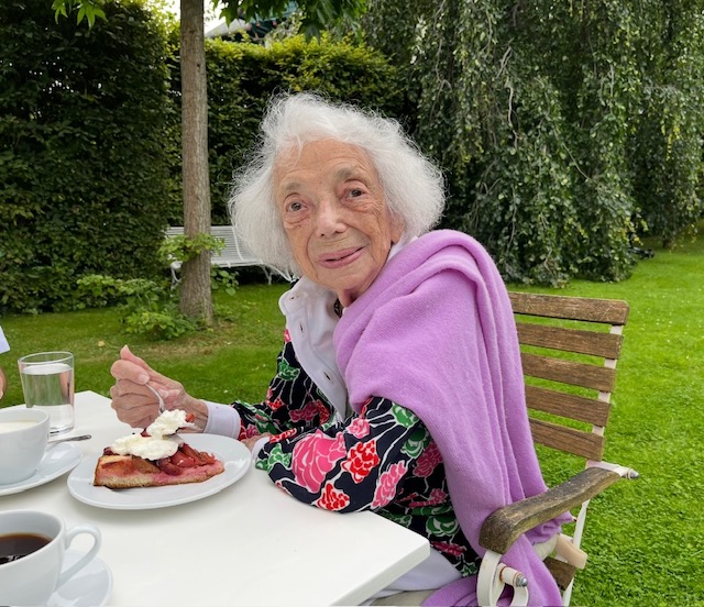 Manchmal, wenn sie einfach bei mir im Garten saß, dann habe ich auch gemerkt, dass sie plötzlich traurig, also still wurde. Und da habe ich schon gemerkt, dass ihr ganz viel durch den Kopf ging. Also ihre Geschichte, das war natürlich präsent. Auch die aktuelle Politik hat sie oft sehr traurig gemacht. Was in Deutschland passiert, was in Israel passiert, was in Gaza passiert, das hat sie alles sehr traurig gemacht und beschäftigt. Sie war immer einerseits mit ihrer eigenen Geschichte verhaftet, aber andererseits war sie komplett in der Jetztzeit mit ihren Gedanken und ihren Überlegungen.